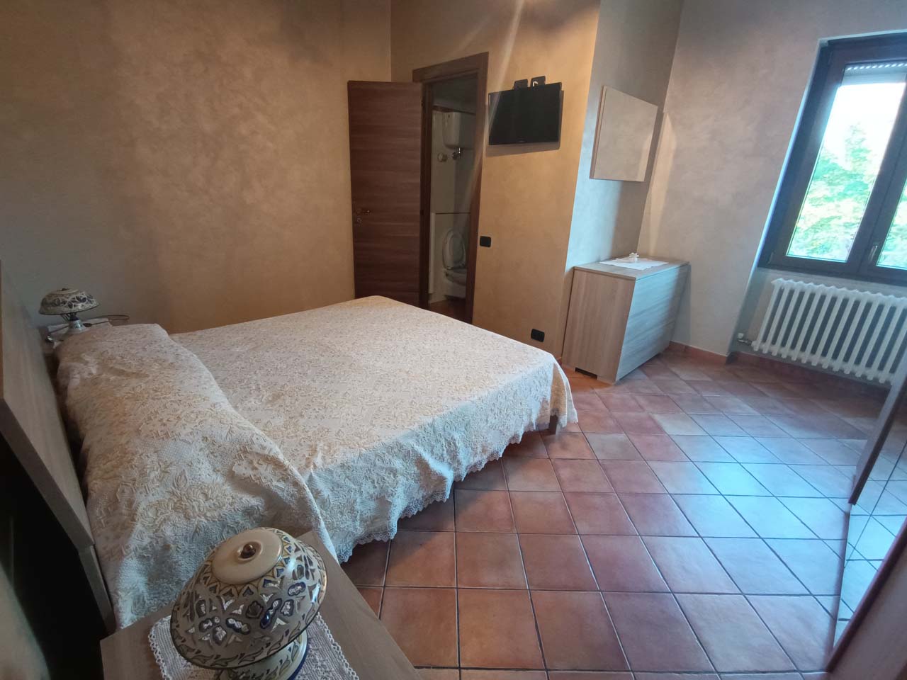 Camera ESTIA: accogliente rifugio con letto matrimoniale, bagno privato e doccia a cascata, arredi raffinati e ogni comfort per un soggiorno indimenticabile..